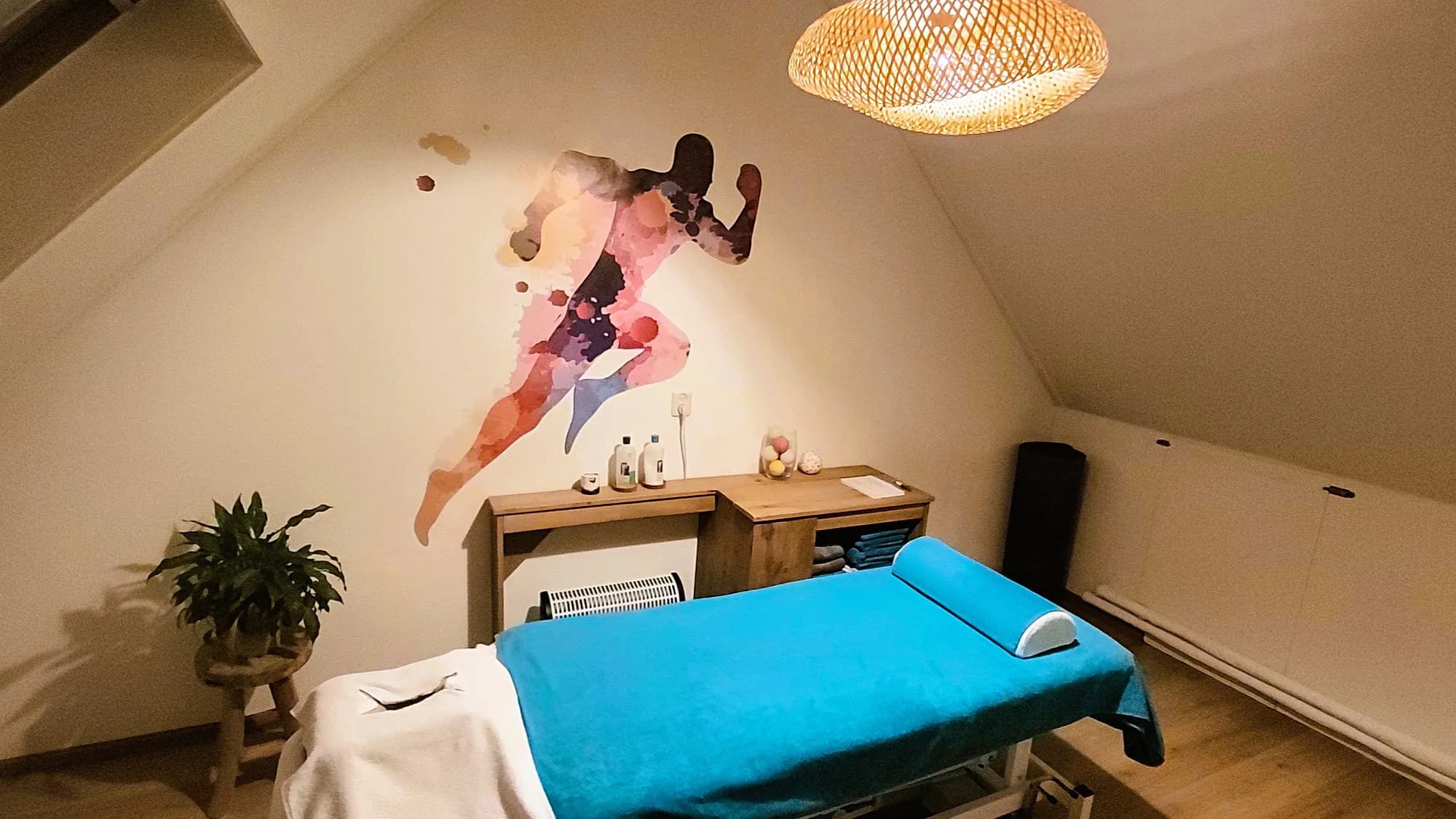 De sportmassage vindt plaats in mijn praktijk aan huis in Wageningen, vlak bij de universiteitscampus.